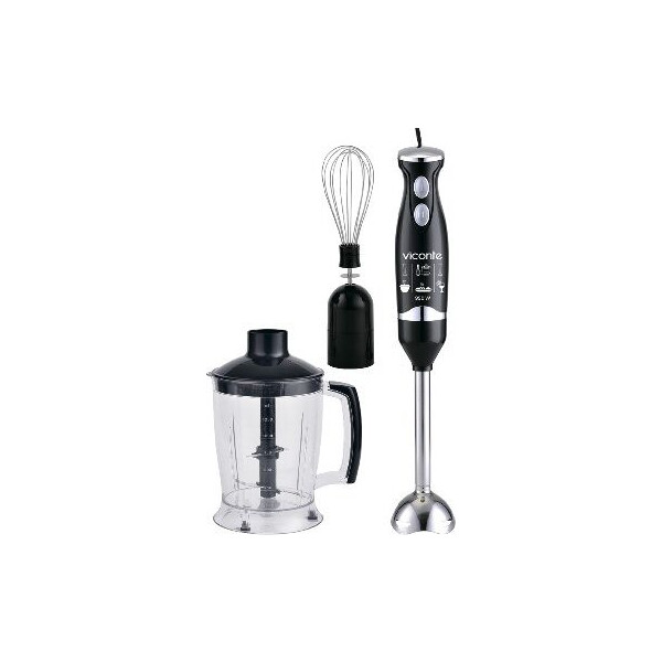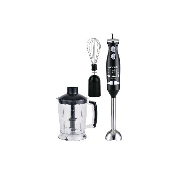 Погружной блендер, мощность 950W, современный эргономичный дизайн, пульсовый режим работы, 2 скорости, 4 лезвия из нержавеющей стали, металлическая нога блендера, венчик для взбивания, чаша с ножом для рубки и измельчения, 1250 мл; автоматическая блокировка при неправильно установленной насадке, удобство и простота в обращении и чистке.
