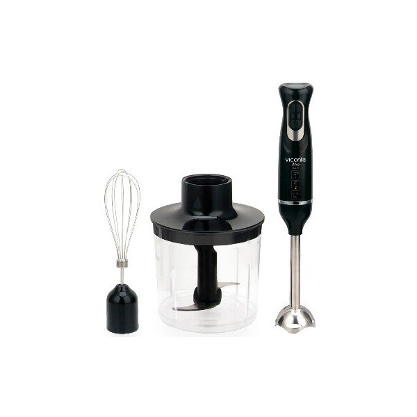 Погружной блендер, мощность 1100W, современный эргономичный дизайн, пульсовый режим работы, 2 скорости, лезвия из нержавеющей стали, металлическая нога блендера, венчик для взбивания, чаша с ножом для рубки и измельчения, 400 мл; автоматическая блокировка