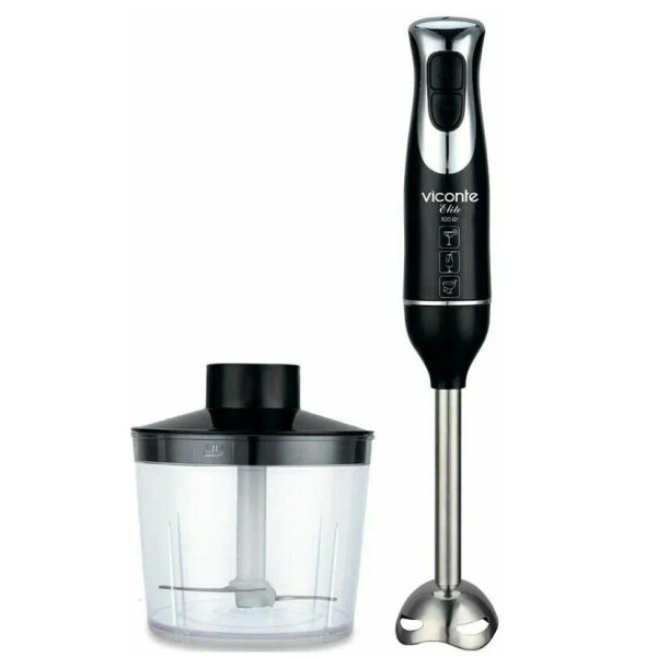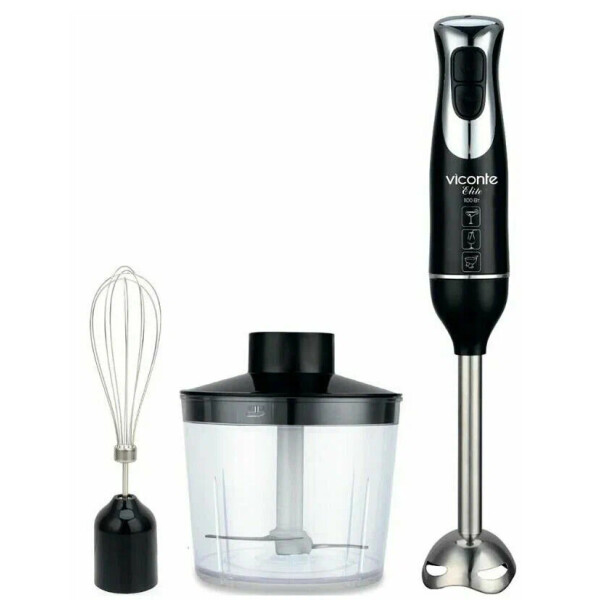 Погружной блендер Viconte VC-4438 1100 W, Погружной блендер, мощность 1100 W, современный эргономичный дизайн, пульсовый режим работы, 2 скорости, режим Турбо, лезвия из нержавеющей стали, металлическая нога блендера, венчик для взбивания, чаша с ножом для рубки и измельчения, 400 мл; автоматическая блокировка при неправильно установленной насадке, удобство и простота в обращении и чистке.