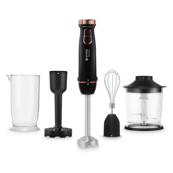 Чтобы вы в любой момент смогли приготовить соус, суп-пюре или густой коктейль из овощей и фруктов, был создан погружной блендер VITEK VT-3402 с максимальной мощностью 1000 Вт. В приборе предусмотрено 8 скоростных режимов, которые плавно переключаются с помощью механического регулятора. Погружная часть блендера для измельчения и насадки-венчика для взбивания и смешивания жидких продуктов выполнена из нержавеющей стали, поэтому прибор будет служить вам надежно и долго. Для самых сложных случаев в приборе имеется режим TURBO, который легко справится с твердыми или очень плотными ингредиентами. В комплект с блендером входят насадка для взбивания, насадка для приготовления пюре, а также стакан для смешивания емкостью 700 мл и чаша измельчителя объемом 500 мл. Работает прибор очень тихо, благодаря DC мотору с низким уровнем шума.