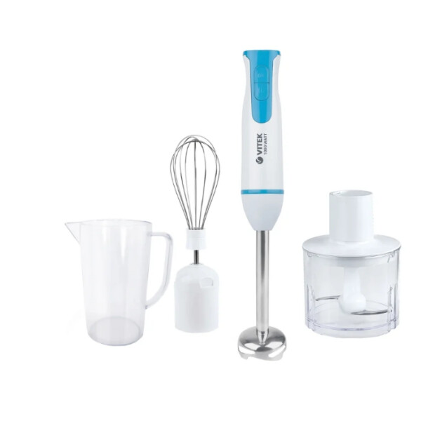 Покупая технику для кухни, мы смотрим не только на ее параметры, но и вид. Этот блендерный набор с тремя насадками выглядит очень ярко. Мощность моторного блока - 1000Вт. Это значит, что у вас не будет проблем с измельчением твердых продуктов (используйте насадку чоппер объемом 0,5 литра) или смешиванием коктейлей. Две режима работы помогут регулировать мощность в зависимости от задач. Насадка-блендер и венчик для взбивания используют вместе с вместительным стаканом. Его объема (0,8 л) вполне достаточно для создания коктейля или смузи на 2-3 человек.