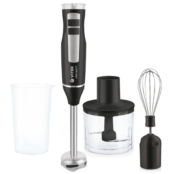 Смешать, взбить или измельчить ингредиенты будущего блюда поможет вам погружной блендер VITEK VT-8542 с максимальной мощностью 1000 Вт. Его погружная часть и лезвия изготовлены из высококачественной нержавеющей стали, которая служит гарантом надежности и долговечности прибора. Скорость работы блендера плавно регулируется, а для ускорения процесса, вы можете использовать усиленный TURBO-режим. В комплект входят чаша измельчителя объемом 450 мл, стакан для смешивания объемом 700 мл насадка-венчик для взбивания.