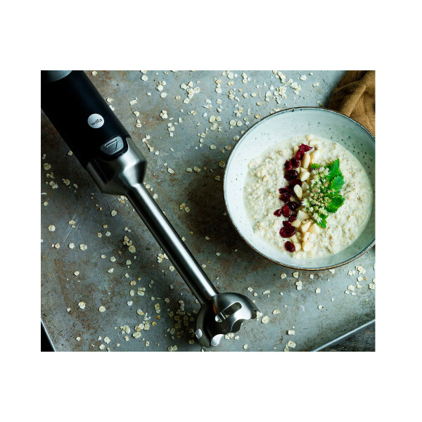 Погружной блендер Wilfa SM-1000FP мощностью 1000 Вт идеальный инструментом для приготовления пищи. Он имеет бесступенчатую регулировку скорости с плавной регулировкой одним пальцем, а прорезиненное покрытие обеспечит удобный захват и удобство использования. Стоит также выделить, что чаша измельчителя отлично подходит для нарезки лука, овощей или мяса, а крышка позволит использовать его в качестве контейнера для хранения готовых блюд.