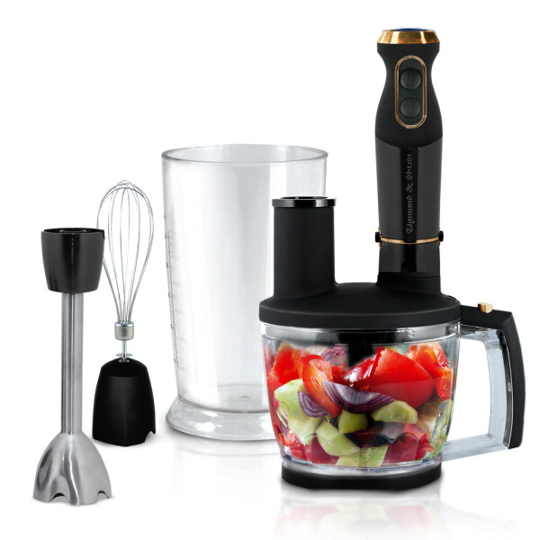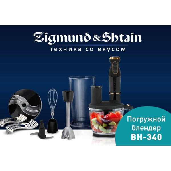 Новый многофункциональный блендер Zigmund & Shtain BH-340 M с расширенным комплектом насадок и аксессуаров за считанные секунды измельчает и обрабатывает как твердые, так и мягкие продукты. С его помощью можно легко приготовить супы-пюре, соусы, тесто, напитки и коктейли.