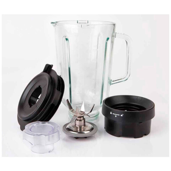 Чаша объемом 1.5 л имеет удобную ручку и съемную крышку со специальным отверстием для безопасного добавления продуктов.