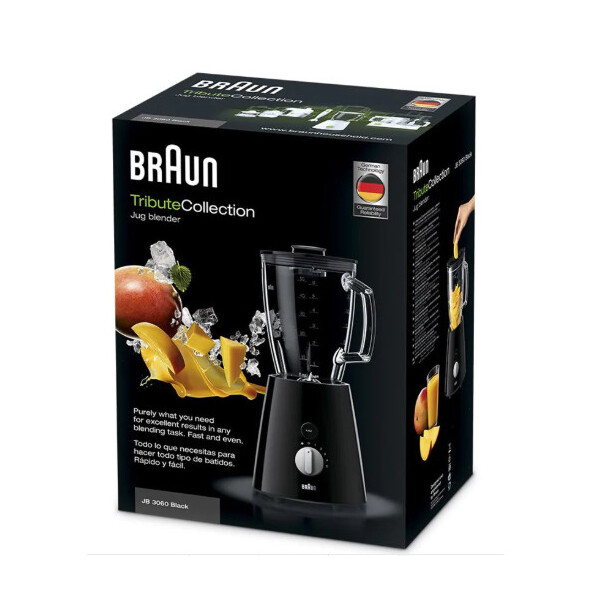 Черный блендер Braun JB 3060 оснащен погружной частью из нержавеющей стали, позволяющей работать с продуктами высокой температуры. Стационарный блендер обладает функцией колки льда, значительно упрощающей приготовление напитков. Наличие отверстия для ингредиентов дает возможность добавлять продукты в процессе работы.