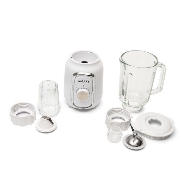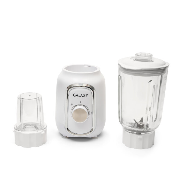 Стационарный блендер GALAXY GL2158 - кухонный прибор для измельчения и взбивания продуктов, а также для создания коктейлей, соусов, пюре, муссов, фруктовых смузи и пр. Блендер имеет стеклянную чашу объемом 1,5 л. Стекло - химически нейтральный материал, не впитывает запахи, не меняет вкус продуктов и не окрашивается. Стеклянная чаша позволяет колоть в ней орехи и лед, а также измельчать горячие продукты, что необходимо, например при приготовлении супов-пюре. Высокая номинальная мощность блендера - 550 Вт и четырехлопастный нож обеспечивают быстрое и равномерное измельчение большого объема продуктов. Блок ножей чаши блендера съемный, что значительно облегчает его очистку. Блендер GALAXY имеет 2 скорости и импульсный режим для измельчения различных по плотности продуктов и приготовления блюд в соответствии с рецептом. Книга рецептов в комплекте позволит Вам разнообразить свое меню. Стоит отметить стильный современный дизайн и совершенную эргономику стационарного блендера GL2158. Съемный мерный колпачок позволяет добавлять необходимые ингредиенты во время работы блендера через крышку, а носик с легкостью переливать в любую емкость полученное блюдо или смесь. Резиновые ножки-присоски надежно фиксируют прибор на рабочей поверхности, исключая его скольжение. Бесспорным преимуществом блендера GALAXY GL2158 является наличие насадки-кофемолки. Благодаря расширенной комплектации Вы приобретаете сразу 2 прибора: блендер и кофемолку. Нежнейшие кремы и глазурь, аппетитные соусы и пюре, ароматные блинчики и бисквиты - с блендером GALAXY GL 2158 Вы можете больше!