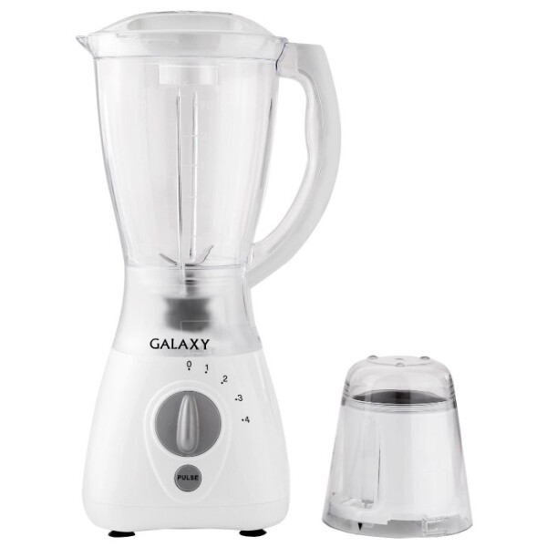Стационарный блендер GALAXY GL2154 имеет стильный дизайн в пластиковом корпусе белого цвета.