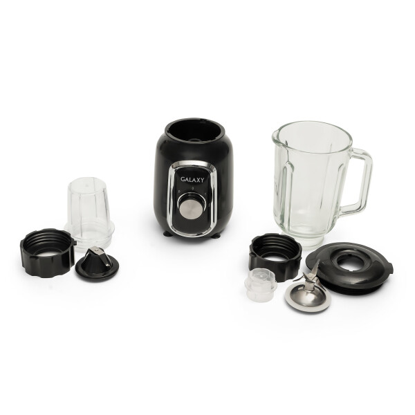 Стационарный блендер GALAXY GL2158 - кухонный прибор для измельчения и взбивания продуктов, а также для создания коктейлей, соусов, пюре, муссов, фруктовых смузи и пр. Блендер имеет стеклянную чашу объемом 1,5 л. Стекло - химически нейтральный материал, не впитывает запахи, не меняет вкус продуктов и не окрашивается. Стеклянная чаша позволяет колоть в ней орехи и лед, а также измельчать горячие продукты, что необходимо, например при приготовлении супов-пюре. Высокая номинальная мощность блендера - 550 Вт и четырехлопастный нож обеспечивают быстрое и равномерное измельчение большого объема продуктов. Блок ножей чаши блендера съемный, что значительно облегчает его очистку. Блендер GALAXY имеет 2 скорости и импульсный режим для измельчения различных по плотности продуктов и приготовления блюд в соответствии с рецептом. Книга рецептов в комплекте позволит Вам разнообразить свое меню. Стоит отметить стильный современный дизайн и совершенную эргономику стационарного блендера GL2158. Съемный мерный колпачок позволяет добавлять необходимые ингредиенты во время работы блендера через крышку, а носик с легкостью переливать в любую емкость полученное блюдо или смесь. Резиновые ножки-присоски надежно фиксируют прибор на рабочей поверхности, исключая его скольжение. Бесспорным преимуществом блендера GALAXY GL2158 является наличие насадки-кофемолки. Благодаря расширенной комплектации Вы приобретаете сразу 2 прибора: блендер и кофемолку. Нежнейшие кремы и глазурь, аппетитные соусы и пюре, ароматные блинчики и бисквиты - с блендером GALAXY GL 2158 Вы можете больше!