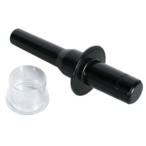 Среди средств управления регулятор в виде колесика. С его помощью можно подобрать оптимальный режим для эффективного измельчения продуктов. Ножки на основании корпуса равномерно распределяют вес и обеспечивают устойчивость. На чашу наносится мерная шкала, по ней устанавливается объем жидкости. В комплектацию входит толкатель, он позволит вам направить продукты к лезвию, не рискуя при этом своими пальцами.