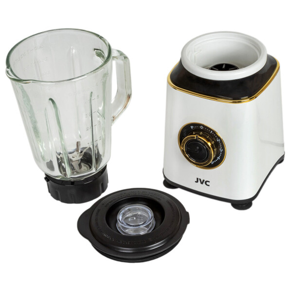 Для смешивания, измельчения и взбивания ингредиентов блендер стационарный JVC JK-SB5225 комплектуется вместительной чашей объемом 1.5 л, при создании которой использовалось стекло. Подобный материал продемонстрирует устойчивость не только к накапливанию запахов, но и появлению различных повреждений. Благодаря импульсному режиму снижается нагрузка на двигатель при обработке твердых ингредиентов. Противоскользящие ножки устойчиво зафиксируют прибор на любой кухонной поверхности.