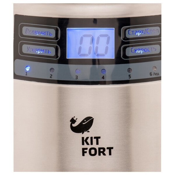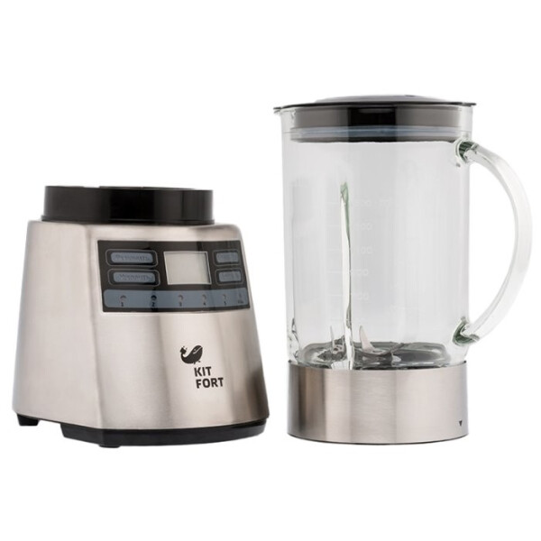 Стационарный блендер Kitfort KT-1301 в серебристом дизайне – прибор, который открывает невиданные ранее горизонты перед кулинарами. Он ускоряет процесс приготовления еды и облегчает его. Быстро сделать пену из яичных белков или коктейль можно с помощью острых ножей и комплекса из стационарного блока управления, стеклянной чаши и острых ножей в основании.