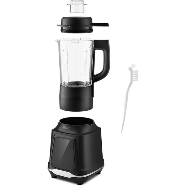 Блендер оснащён вместительной чашей с объёмом 1,2 л, выполненной из прочного стекла. Устройство легко разбирается, что позволяет тщательно промывать его детали. Также для лучшей чистки в комплекте с блендером идёт специальная щёточка.