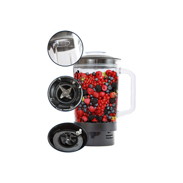 Объем стеклянного кувшина - 1,5 литра и этого вполне достаточно для приготовления напитка для семьи или компании. В нем можно смешивать различные продукты для приготовления смузи, соусов, супов, майонеза, детского питания, напитки и молочные коктейли. Кроме этого, его можно использовать для колки льда. Материал ножей из долговечного материала - нержавеющей стали. Их особенностью является конструкция состоящая из 6 лепестков, такие ножи высокоэффективны, так как в отличии от обычных ножей (2-4 лепестка) они намного быстрее и качественней справятся с поставленной задачей. Для комфортного использования в крышке стационарного блендера имеется отверстие для добавления продуктов, такая конструкция позволит добавлять продукты постепенно, что удобно для определенных рецептом. Размер кувшина: высота 23 см, ширина 14 см, глубина 14 см.