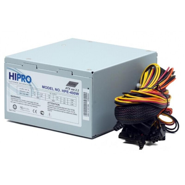 Блок питания HIPRO HPE400W имеет мощность 400 Вт и отлично подойдет для современного компьютера среднего класса. Корпус данного устройства выполнен в форм-факторе АТХv2.2. Блок питания HIPRO HPE400W включает в себя все необходимые типы разъемов. К ним относятся порты питания видеокарты, материнской платы и ЦПУ. Линии питания материнской платы имеют длину 400 мм. Также присутствуют разъемы SATA и Molex.