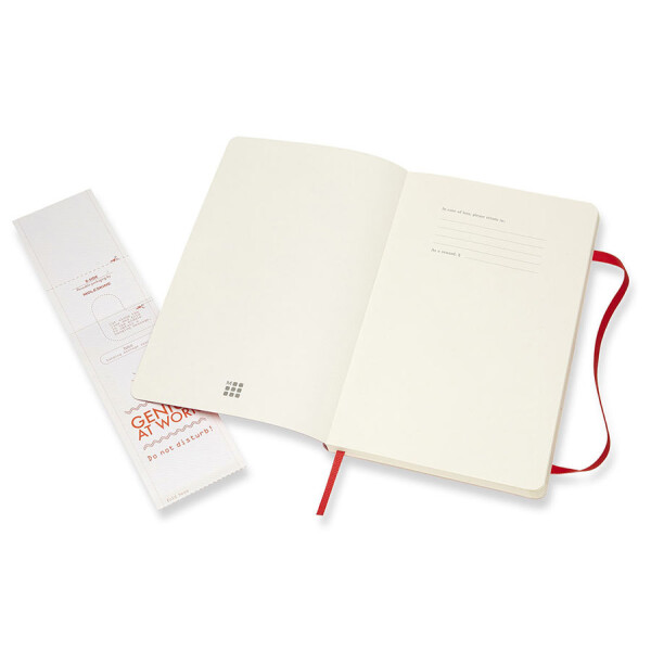 Блокнот размера large в мягкой, но прочной обложке приспосабливается к движениям тела и легко помещается в карман. Он станет для тебя надежным спутником в путешествии и идеально подойдет для записи мыслей и заметок. Этот продукт выполнен в шитом переплете с мягкой обложкой со скругленными углами, с листами из бескислотной бумаги, закладкой, эластичной застежкой и вместительным внутренним карманом, куда вложена открытка с историей Moleskine.