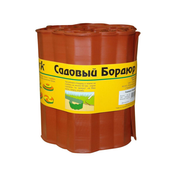 Бордюр для оформления клумб, грядок, газона, приствольных кругов деревьев и кустарников. Из пластика, содержащего добавки, повышающие устойчивость материала к воздействию ультрафиолетовых лучей.