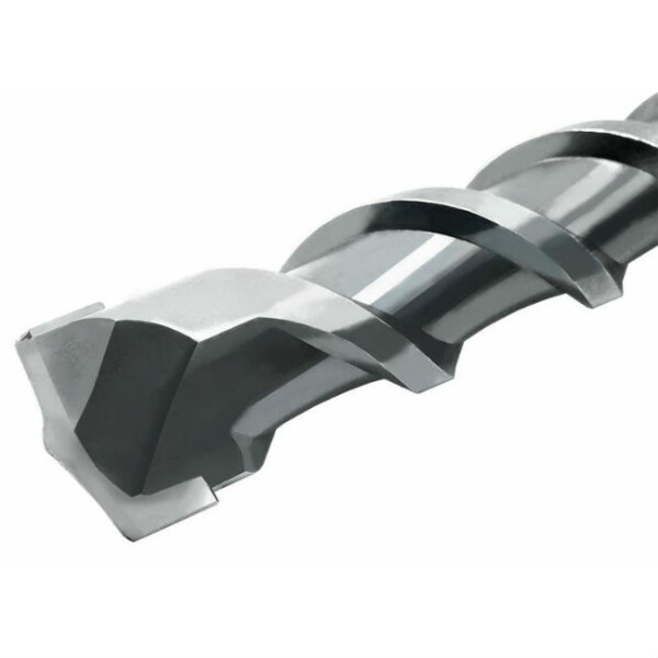 Одинарная твердосплавная пластина увеличенного размера с выраженным центром для наиболее точного засверливания и продолжительной работы. Узкая долотообразная форма ударной части позволяет существенно увеличить скорость работы бурами маленького диаметра по сравнению с квадробурами. Широкая одинарная не глубокая спираль новой формы повышает скорость отвода шлама из отверстия увеличивая производительность работы по сравнению с бурами с двойной спиралью и старыми бурами с одинарной спиралью. Для ударного сверления отверстий в бетоне, кирпиче, камне перфораторами SDS-plus.