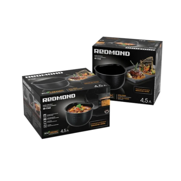 Чаша Redmond RB-C562 изготовлена из качественного алюминия и оформлена в черной расцветке. Керамическое покрытие предотвращает пригорание пищи и упрощает очистку емкости после использования. Наличие мерной шкалы позволяет отмерять нужное количество воды или компонентов.
