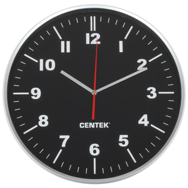 Часы настенные Centek СТ-7100 выполнены в черном цвете. В корпусе есть серебристые элементы, вам понравится стильный дизайн. Установка часов происходит на стене. Есть специальное крепление в конструкции, с его помощью удается зафиксировать изделие. Часы Centek СТ-7100 оснащаются циферблатом. Стрелки указывают на текущее время. Подобный способ отображения данных прост и удобен для владельцев. Ход секундной стрелки плавный, она движется с одинаковой скоростью.