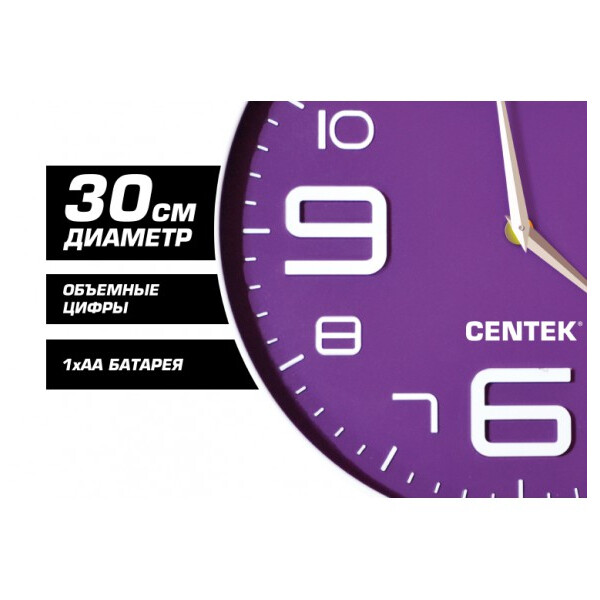 Особенность модели Centek СТ-7101 заключается в ее длительной работе без необходимости в постоянном подзаводе. На круглой рабочей поверхности аксессуара расположены секундная и минутная стрелки, а также цифры для отображения точного времени. Часы выполнены в сдержанной фиолетовой гамме.