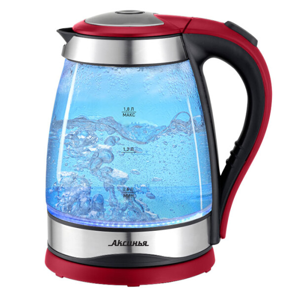 Чайник электрический Аксинья КС-1004 привлекает внимание современным дизайном и прозрачной поверхностью емкости из термостойкого стекла. Корпус дополняется контрастными черно-красными элементами и визуально понятными индикаторами. Устройство с мощностью 2200 Вт и объёмом 1,8 л.