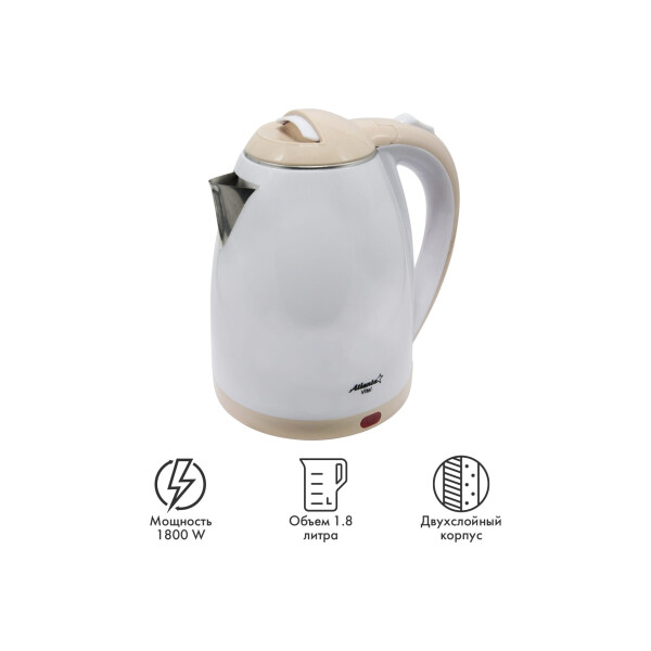 Электрический чайник ATH-2437 прост в управлении и долговечен в использовании. Изготовлен из высококачественных материалов. Мощность 1800 Вт позволит вскипятить 1.8 литра воды в считанные минуты. Для обеспечения безопасности при повседневном использовании предусмотрены функция автовыключения, а также защита от включения при отсутствии воды.