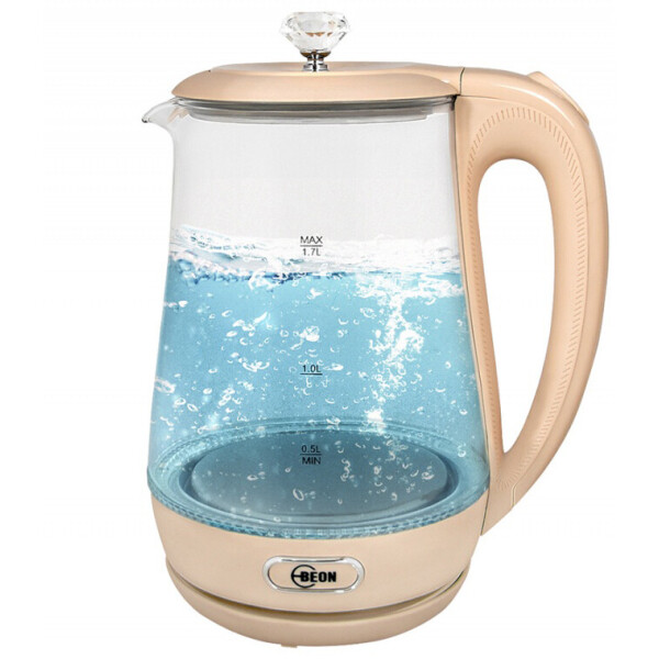 Электрический чайник Beon BN-3020 с уникальным дизайном подойдет под любой интерьер кухни. Ручка для крышки чайника представлена в форме кристалла. Крышка съемная, внутренняя сторона изготовлена из нержавеющей стали. Объем устройства составляет 1,7 литра. Соотношение мощности 2200 Вт позволит быстро нагреть воду в представленном объеме. Корпус чайника выполнен из термостойкого стекла. Данный материал при нагревании не выделяет вредных веществ. Гарантирована эксплуатация на долгие годы. Скрытый нагревательный элемент позволит легко ухаживать за чайником. Для предотвращения попадания накипи в чашку на носике чайника есть специальный фильтр. Для более точного набора воды есть специальный индикатор. В процессе работы горит красивая LED подсветка.
