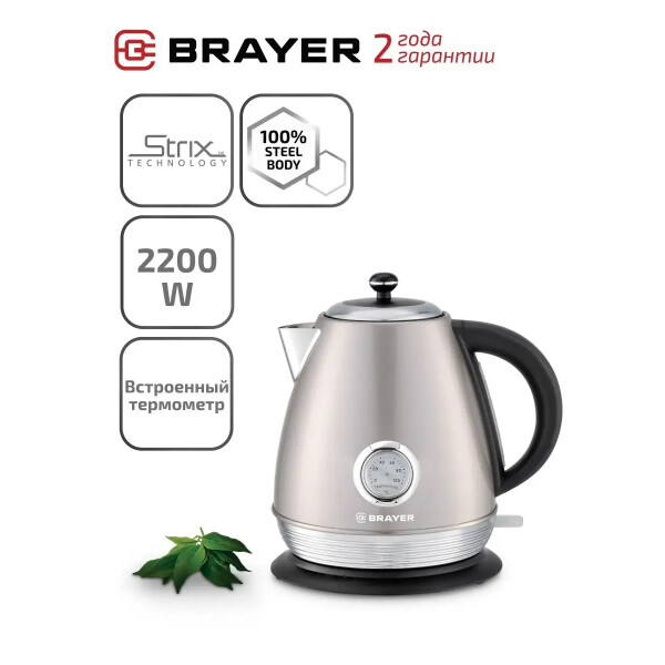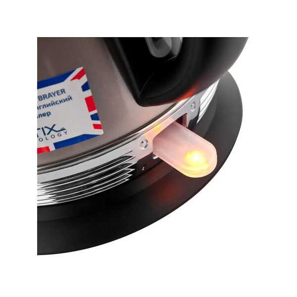 BRAYER BR1007 Материал защищает модель от механического воздействия и предотвращает образование ржавчины на стенках. Индикатор уровня воды показывает минимальное и максимальное количество жидкости, которое допустимо при кипячении. Устройство с дисковым нагревателем повышает скорость закипания, а также снижает расход электроэнергии. Защита от включения чайника без воды обеспечивает высокий уровень безопасности и долгий срок службы.