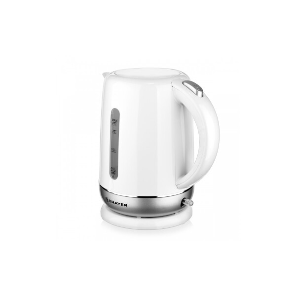 BrayerBR1011 классический электрочайник с механической системой управления. Его объём составляет 1,7 л. В нём установлен дисковый нагревательный элемент мощностью 2200 Вт, который быстро доводит воду до температуры 100. ПРОДУМАННАЯ КОНСТРУКЦИЯ Корпус сделан из прочного термостойкого пластика.