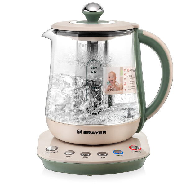 В чайнике предусмотрена функция заваривания чая, что позволяет приготовить травяной напиток прямо внутри устройства, благодаря встроенному ситечку.