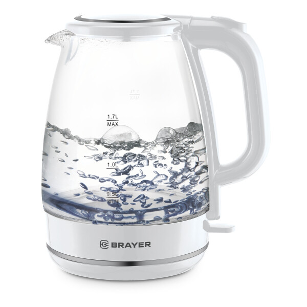 Чайник электрический Brayer BR1030WH представлен в белам цвете.