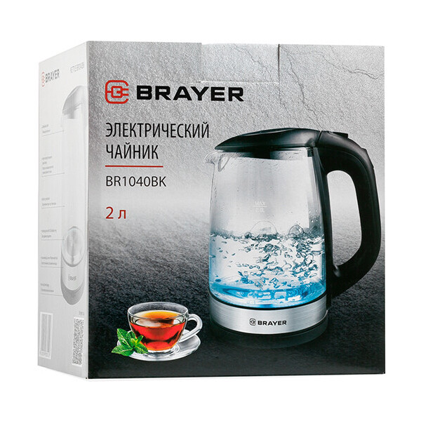 Электрочайник Brayer BR1040BK оптимален для домашнего и офисного использования. Модель позволяет вскипятить воду для приготовления чая, кофе и других горячих напитков. Прозрачный резервуар имеет объем 2 л, поэтому не требует частого заполнения. Корпус устройства произведен из жаропрочного стекла. Качественный материал не подвержен появлению трещин и сколов, что обеспечивает продолжительный срок службы. Внутренняя подсветка создает комфортные условия для эксплуатации чайника в темное время суток.