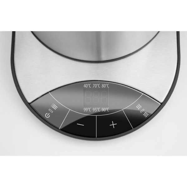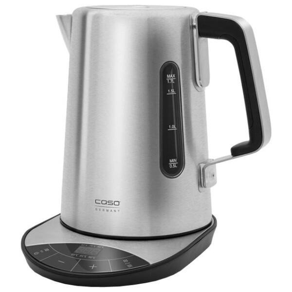 CASO WK 2500 изготовлен из нержавеющей стали, что дает гарантию в долгом сроке службы, а также он менее подвержен механическим повреждениям. Данная модель имеет объем 1,7 литра, а также снабжена функцией контроля температуры с 6 степенями: от 40 до 100 C. Управление чайника сенсорное, имеется место для намотки кабеля, звуковой сигнал о закипании воды, а также индикация о температуре нагрева. Все это дает потребителю удобство и комфорт в использовании.