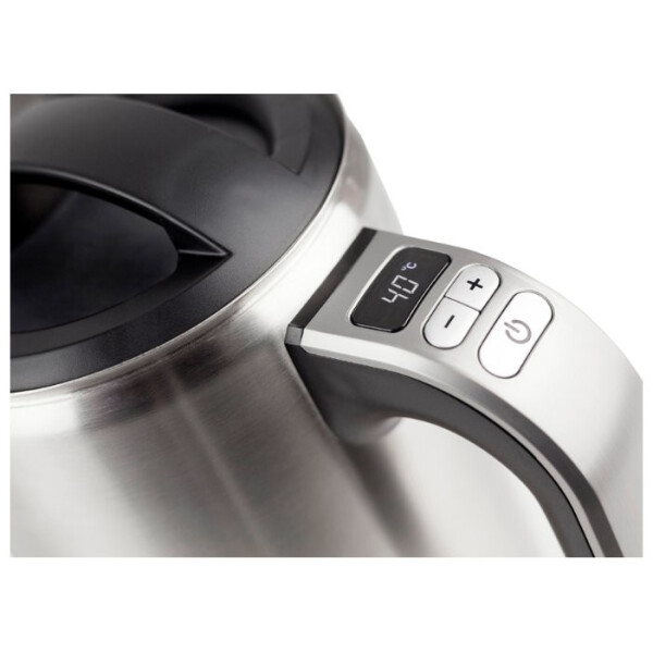 Панель управления расположена на ручке. Регулировка температурного режима в диапазоне 40-100С (шаг 10С). Температурный диапазон позволяет заваривать разные сорта чая, начиная слабым травяным, заканчивая крепким черным. Текущая температура отображается на цифровом дисплее.