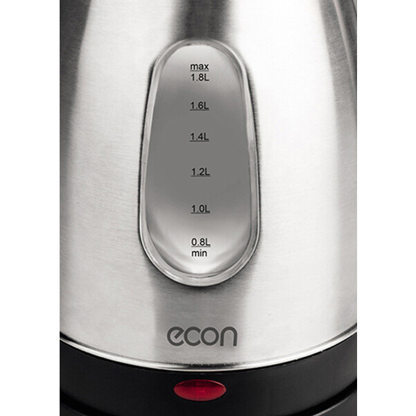 Электрический чайник ECON ECO-1882KE станет настоящим помощником на вашей кухне. Мощность чайника 1850 Вт позволяет использовать его в домах со слабой проводкой, например на даче, но ее достаточно для того, чтобы вскипятить 1,8 литра воды всего за несколько минут. Корпус из высококачественной нержавеющей стали сохраняет природный вкус и натуральные свойства воды, не имеет запаха и препятствует образованию накипи. Широко открывающаяся крышка обеспечивает удобный набор воды и легкую очистку прибора. Функция автоматического отключения при закипании или недостаточном количестве воды гарантирует безопасное использование прибора и экономию электроэнергии.