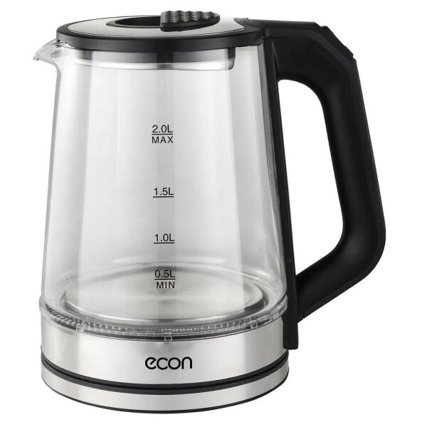 Стильный электрический чайник ECON ECO-2050KE из высококачественного пластика и боросиликатного стекла станет оригинальным украшением вашей кухни и прекрасным подарком друзьям и родственникам.