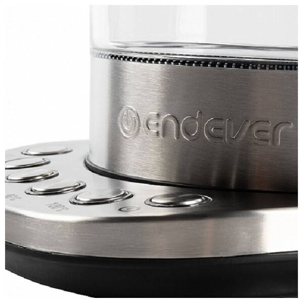 Электрочайник Endever Skyline KR-336G имеет объем 1.5 л. и обладает максимальной мощностью 1800-2200 Вт. У данной модели чайника есть функция выбора нагрева температуры воды 40°С / 70°С / 90°С / 100°С, которая сопровождается светодиодной подсветкой. При завершении работы, а также при включении чайника без воды- произойдет автоматическое отключение устройства. Кнопочная панель управления расположена на подставке чайника.