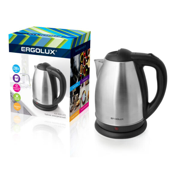 Чайник ERGOLUX ELX-KS01-C72 используется в бытовых целях. Изготовлен из нержавеющей стали, устойчивой к коррозии и механическим повреждениям. Данная модель имеет крышку с фиксатором и кнопку для открывания.
