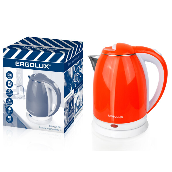 Чайник ERGOLUX ELX-KS07-С37 нержавеющая сталь/пластик, оранжево-белый ПРОМО 13955 предназначен для бытовых целей.