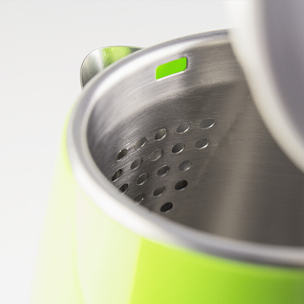 Благодаря такой конструкции наружная поверхность чайника не нагревается, о него невозможно обжечься, устройство издает меньше шума при нагреве воды.
