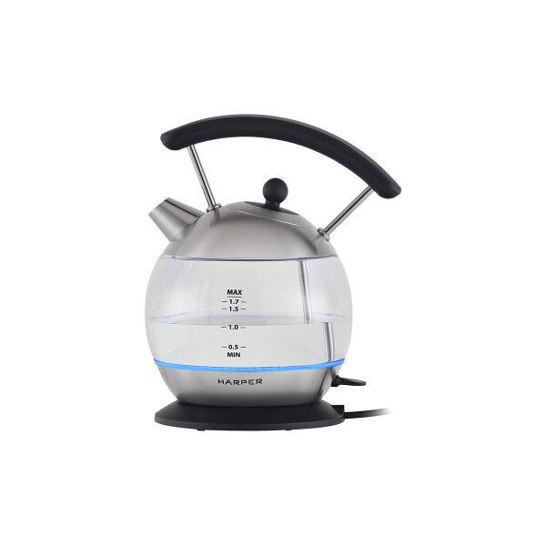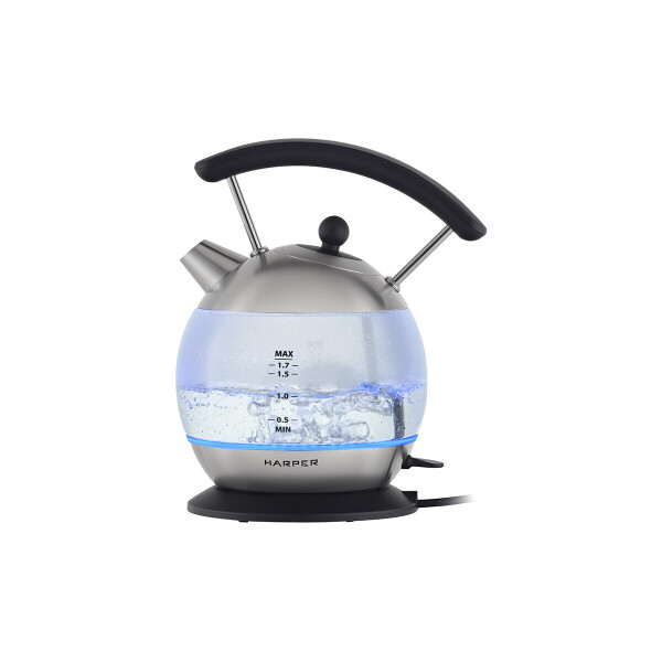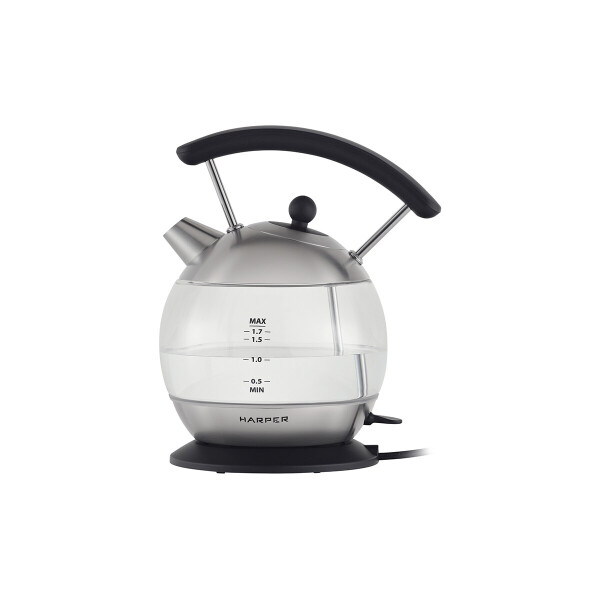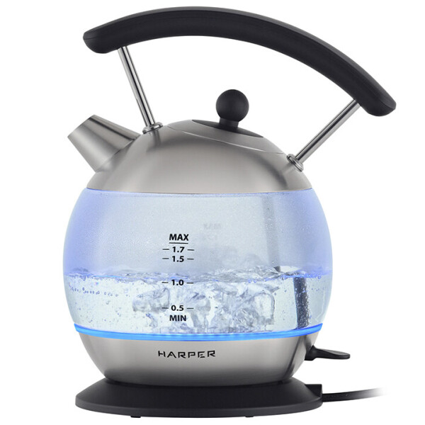Стильный электрический бытовой чайник Harper HWK-GM01 на 1,7 литра с подсветкой оборудован удлинённой ручкой, усиливающей упор при опрокидывании, и надёжной контактной группой Strix. Последняя не только выдерживает до 15 тыс. циклов использования, но и облегчает позиционирование чайника, а также автоматически отключает питание при снятии ёмкости. Harper HWK-GM01 оснащён нагревателем с закрытым исполнением и автоматической системой защиты от перегрева при недостаточном количестве или полном отсутствии жидкости.