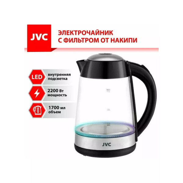 Стильный электрический чайник JVC JK-KE1705 из высококачественного пластика и боросиликатного стекла со светодиодной подсветкой станет оригинальным украшением Вашей кухни и прекрасным подарком друзьям и родственникам.