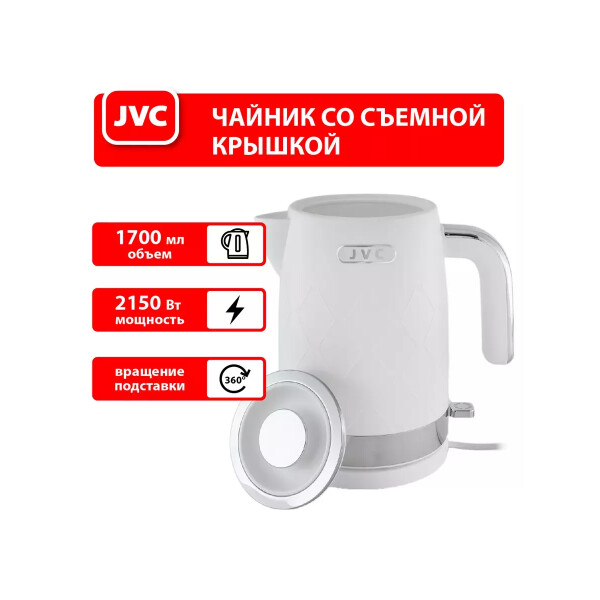 Чайник электрический JVC JK-KE1722 в корпусе из текстурированного пластика с закрытым нагревательным элементом, индикацией включения в сеть.