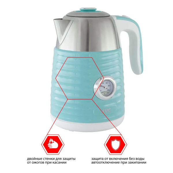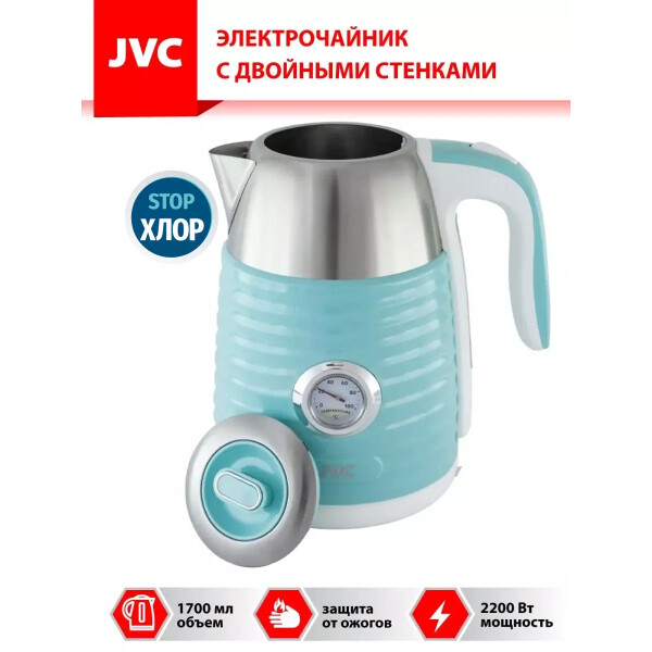 Чайник электрический JVC JK-KE1726 с двойными стенками корпуса и датчиком температуры нагрева станет оригинальным украшением Вашей кухни и прекрасным подарком друзьям и родственникам.