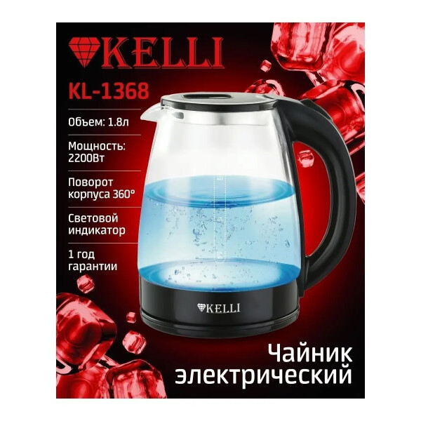 Чайник электрический Kelli KL-1368 быстро нагреет воду. Внутри находится закрытая спираль, благодаря чему очистка чайника займет намного меньше времени. Корпус модели выполнен из прочного и безопасного термостойкого стекла. Благодаря внутренней подсветке при кипячении воды прибор станет красивым дополнительным украшением кухни.