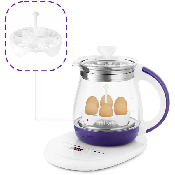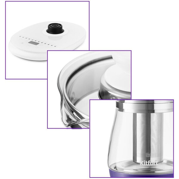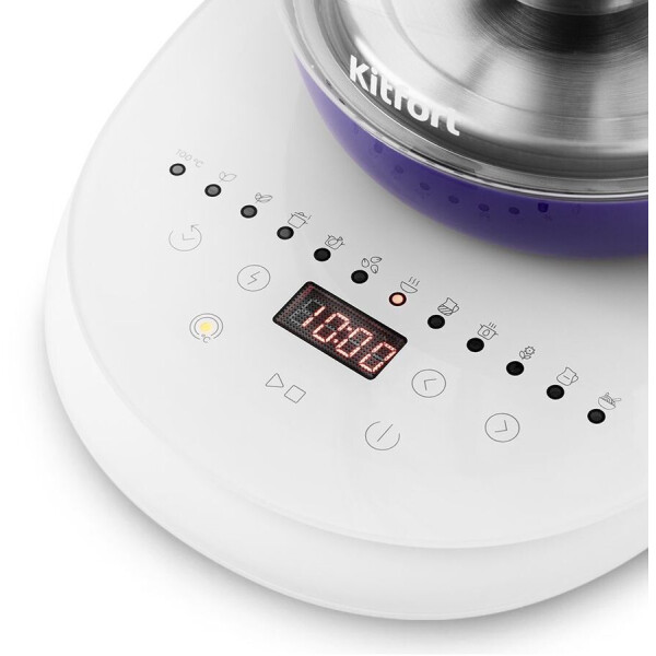 Электрический чайник с сенсорным управлением КТ-6130 является универсальным прибором для приготовления не только напитков, но и пищи. Помимо кипячения, прибор греет воду до заданной t, а также имеет специальные программы для приготовления различных блюд. На ярком дисплее отображается t воды и время.