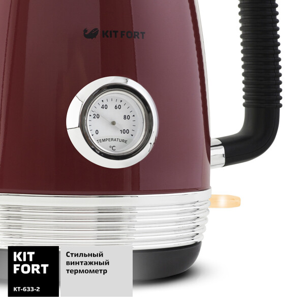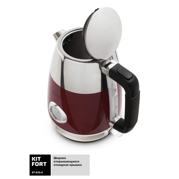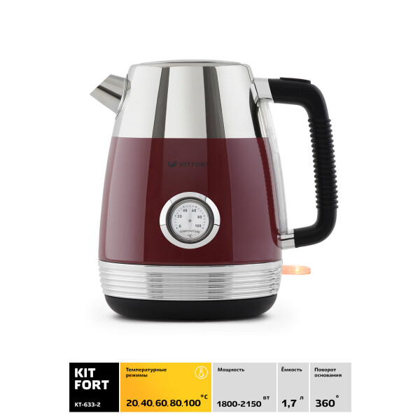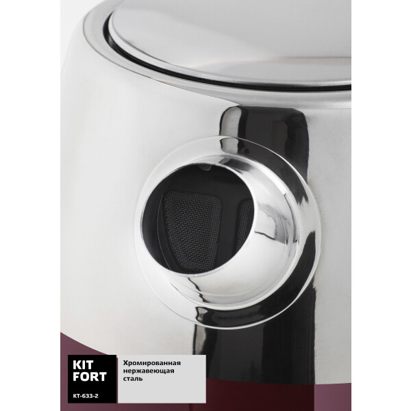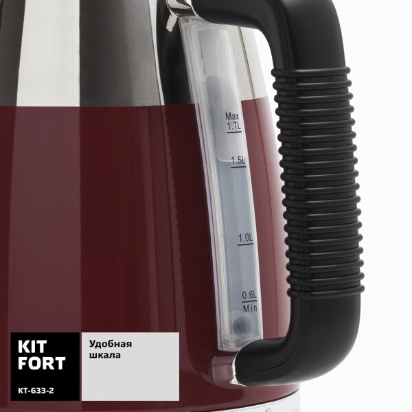 Электрический чайник Kitfort КТ-633 предназначен для кипячения воды дома, в офисах и на дачах. Мощность чайника позволяет использовать его в домах со слабой проводкой. Корпус чайника и подставка выполнен из сочетания металла и пластика, а подставка - из пластика. Мерная шкала находится на корпусе сбоку у ручки.