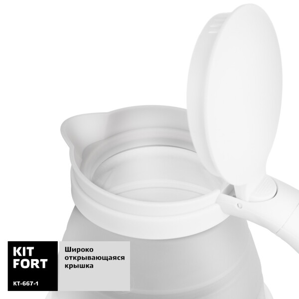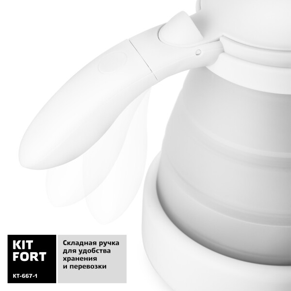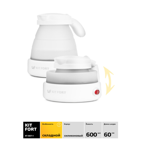 Складной дорожный чайник Kitfort КТ-667 станет незаменимым помощником в путешествиях, деловых поездках и в любых других сложных бытовых условиях. Его корпус эластичный и складывается, так что его можно компактно уложить в багажный чемодан или сумку и везде возить с собой.