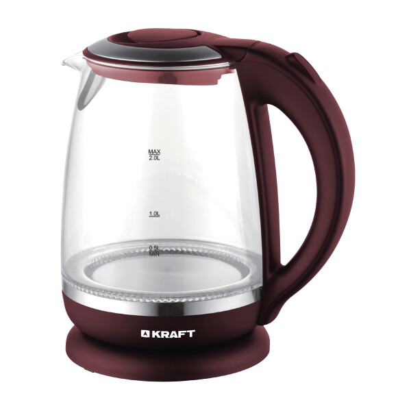 Чайник электрический Kraft KF-KG2018BR выполнен из нержавеющей стали и боросиликатного стекла, быстро нагреет 2 литра воды.